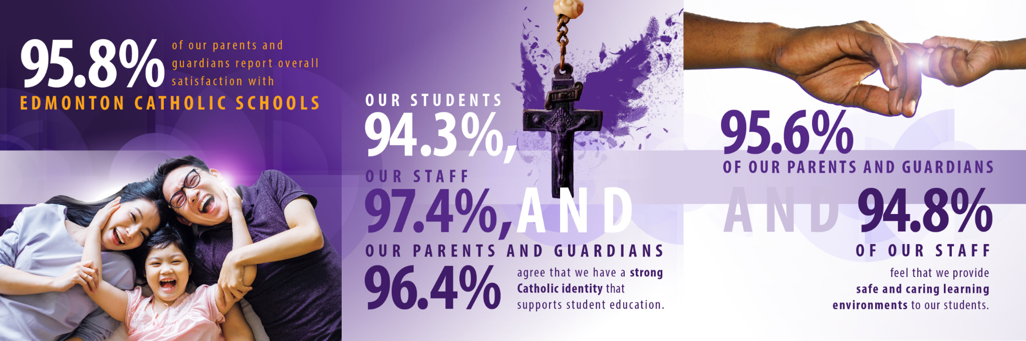 • 95.8% of our parents and guardians report overall satisfaction with their child’s school and Edmonton Catholic Schools.